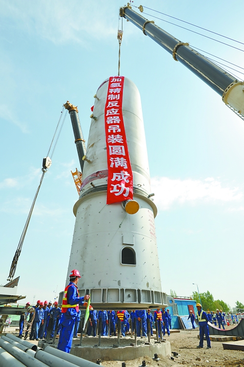 5月15日9時,呼和浩特石化公司年170萬噸煤柴油加氫精制R101反應器一次吊裝成功,標...