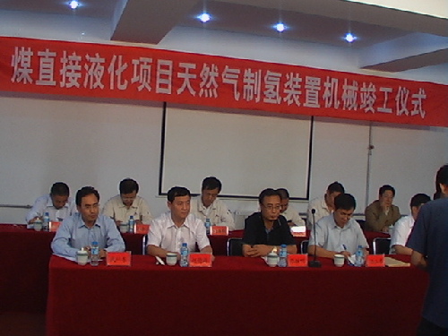 8月25日,由十建公司承建的內(nèi)蒙古神華煤直接液化項目天然氣制氫裝置108A單元的機械竣工。中國神華煤制油化工公司董事長張玉卓、神華煤制油化工工程公司總經(jīng)理陸正平、十建公司副經(jīng)理趙德源參加了竣工儀式。