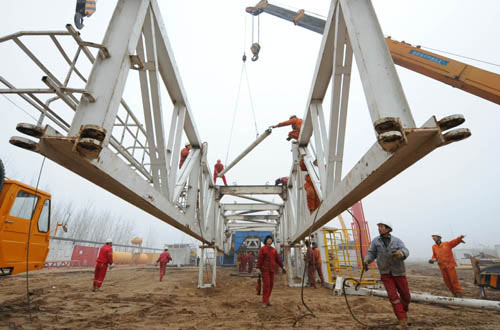 中原油田10年產能建設第一輪井12口開始實施。12月10日,橋29—68井是黃河南油區2010年部署的一口開發井,正準備開鉆。也是鉆井二公司這次中標了2010年的首口新井,接到施工任務后,該公司組織4059鉆井隊、安裝隊及機關人員,認真做好鉆機設備搬遷、安裝工作,現場科學、交叉施工,實現了搬遷、安裝、開鉆三個當天的高速度,并計劃用優質高效當月交井。