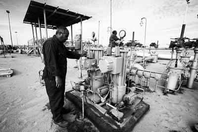 石油工人在利比亞?wèn)|部的一個(gè)油田工作